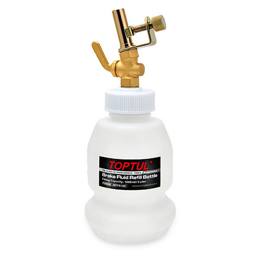 Бачок для заміни гальмівної рідини 1000 мл TOPTUL JEFF01A0 являє собою накопичувальну ємність, яка застосовується під час робіт з обслуговування систем гідроприводів гальм автомобілів.